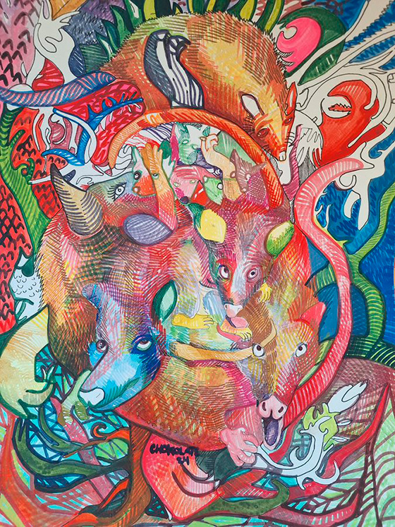 Técnica: Acrílico, acuarela y estilógrafo