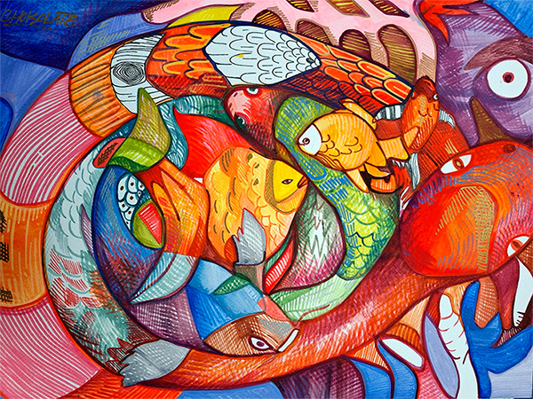 Técnica: Acrílico, acuarela y estilógrafo